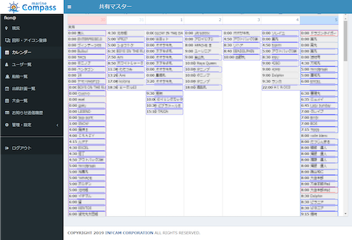 共有マスターと関連付けられたアプリ(艇)の出港計画をカレンダーで確認できます