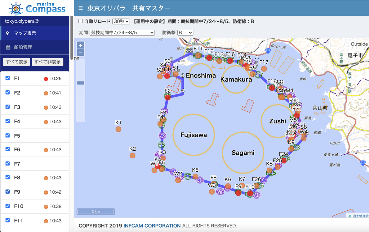 「共有マスター」機能は、本来マリーナ施設や港に係留する船の管理者機能として運用されていますが、今回のオリンピックセーリング競技が例のように、ヨットレースなどの大会やイベントなどでもご利用いただけるサービスです。