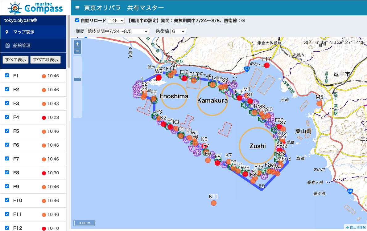 2021東京オリンピック大会セーリング競技の運営会場にてマリンコンパス「共有マスター」機能が使われました。
